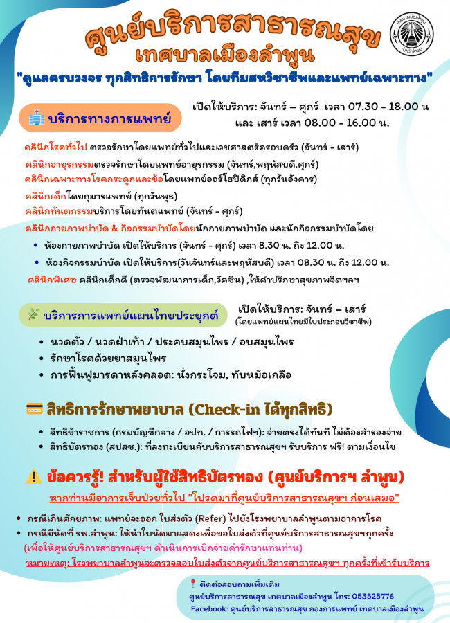 วันที่ 30 มีนาคม 2569 ศูนย์บริการสาธารณสุข เทศบาลเมืองลำพูน ได้จัดประชุม อสม.เทศบาลเมืองลำพูน ประจำเดือนมีนาคม ณ ห้องประชุมอาคารคุณธรรม 36 [...]