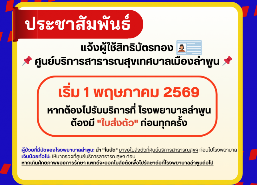วันที่ 16 มีนาคม 2569 นายประภัสร์ ภู่เจริญ นายกเทศมนตรีเมืองลำพูนพร้อมด้วยคณะผู้บริหารและผู้อำนวยการกองการแพทย์ หัวหน้าฝ่ายศูนย์บริการสาธารณสุขและเจ้าหน้าที่ศูนย์บริการสาธารณสุขเทศบาลเมืองลำพูน [...]